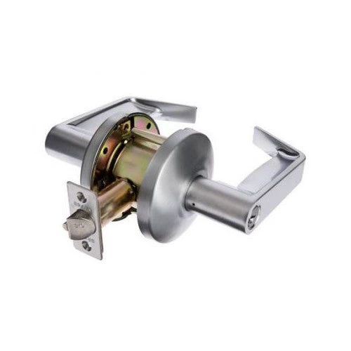 - Outside lever unlocked by key, lever retracts the latch.