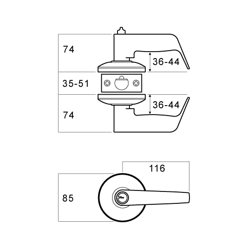 | Door thickness | 35 mm – 51 mm |