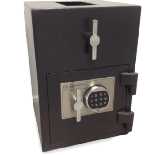 Using a unique top access rotating deposit shute, the TD Series deposit safes allow easy depositing, while making it very difficult to force open. Deposits are placed in the opening before turning the handle to transfer the deposit into the secure compartment below. Rotating deposit safes can be built into cabinets to allow deposits to be made through the counter top, making a clean and efficient installation.