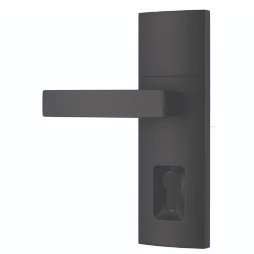 Inside and outside escutcheons and levers. No keyed cylinder. Suitable for non-locking leaf of double doors.