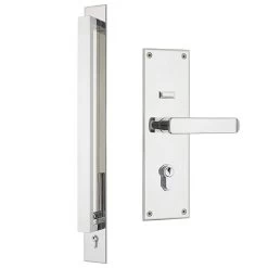The Gainsborough Trilock Omni features a 600mm pull handle and world renowned 3 in 1 operation – deadbolt, lockset and passage functions all in the one lock. The external lever on the Trilock Omni is cleverly positioned behind the pull handle for added aesthetics. The internal side of the lock features a stylish flat plate Tri lock Eclipse and offers a range of matching internal levers. 60mm backset. Note: Gainsborough Trilock Omni features pull handle, escutcheon plate and lever on the external side and lever and escutcheon plate on the inside.