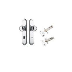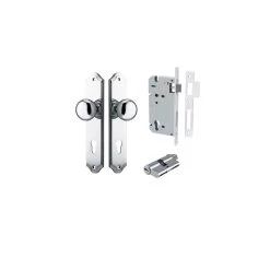This product comes with face fix wood screws and tie bolts, Euro and privacy punch outs are 85mm CTC.