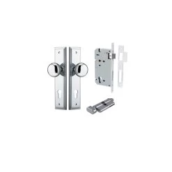 This product comes with face fix wood screws and tie bolts, Euro and privacy punch outs are 85mm CTC.