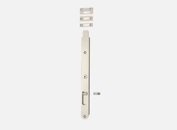 Key operated solid brass locking flush bolt. This product sits flush within a door for a clean, modern look. Bolts can be keyed alike.