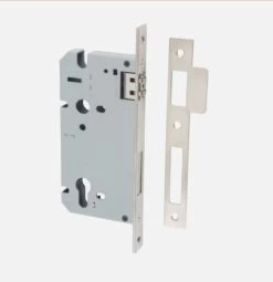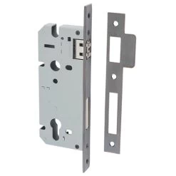 High Security. 85mm centre to centre. Solid brass or stainless steel face and striker plates. Available in 10 finishes. Reversible tongues. Latch retraction. Tested over 130,000 cycles. 45mm and 60mm backsets. Fitting instructions supplied.