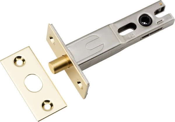 Privacy bolt featuring brass face plate and striker. Suits Iver privacy turns and long backplate privacy hardware.