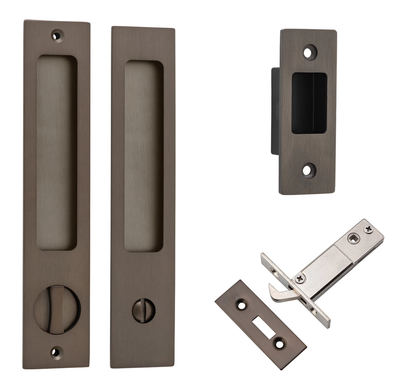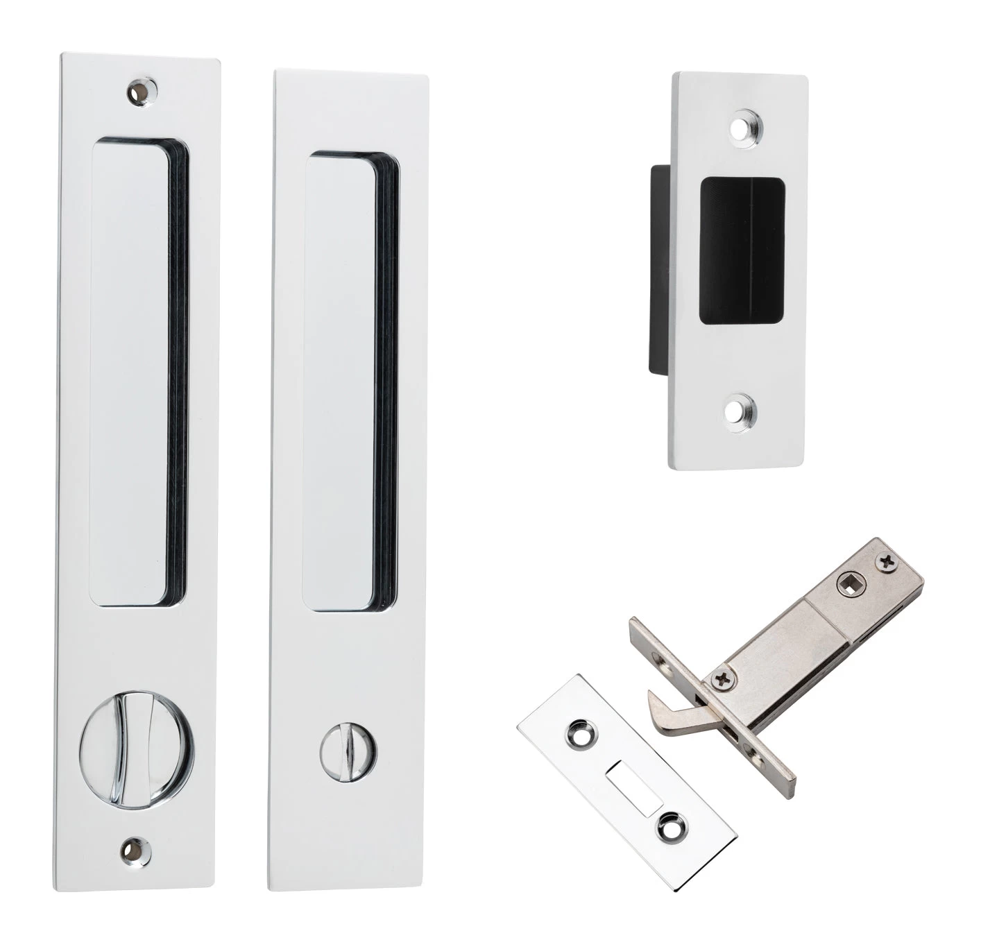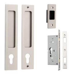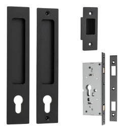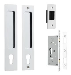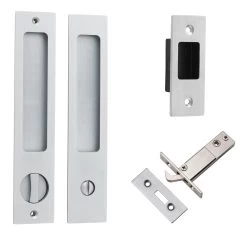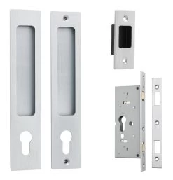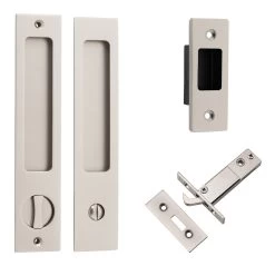 Sliding pulls are available in non-locking passage, euro lock, privacy and round privacy sets.