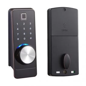 An automated deadbolt 5 in 1 digital lock with its own built in handle. A stylish door lock with a Bluetooth App, pin code, RFID card and fingerprint, manual key to provide quick and convenient access. The ML-M818 comes in two types the deadbolt version or the rim latch version.