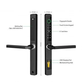 - Unlocking methods: app/fingerprint/code/RFID card/key