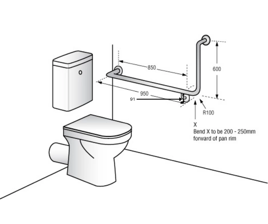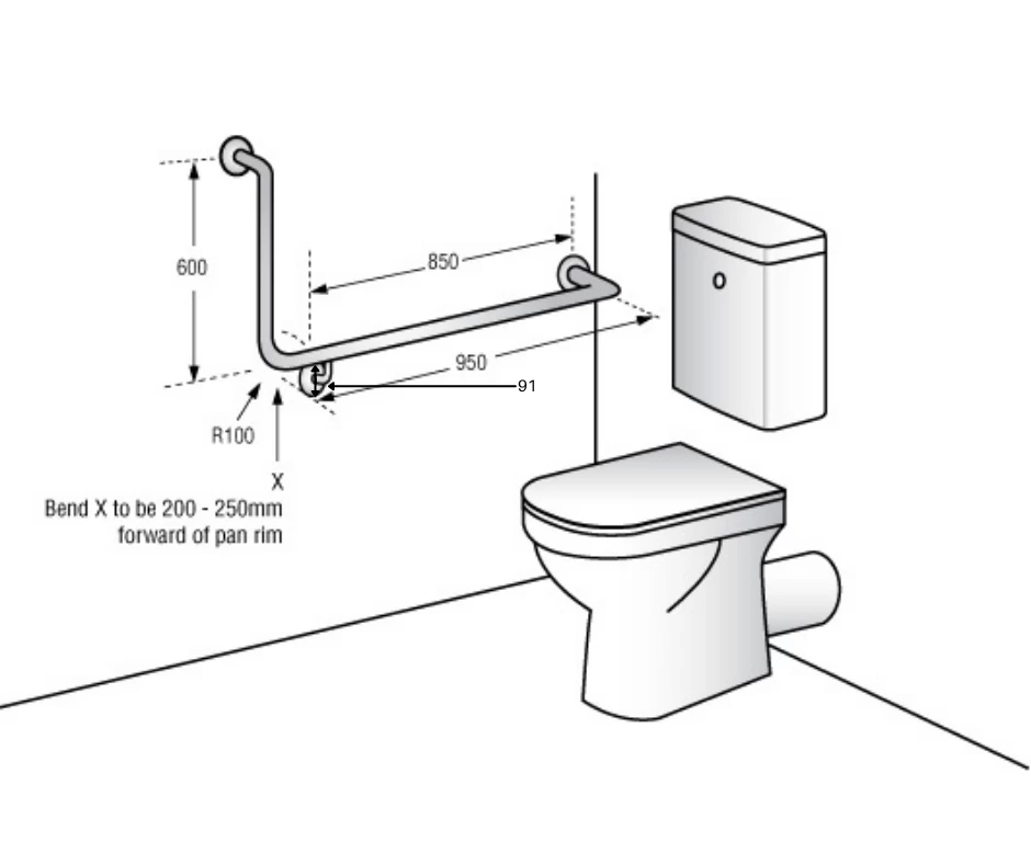 *The materials and construction of this grab rail meets AS1428.1 force requirements to be able to withstand a force of 1100Nm applied at any position and in any direction without deformation.