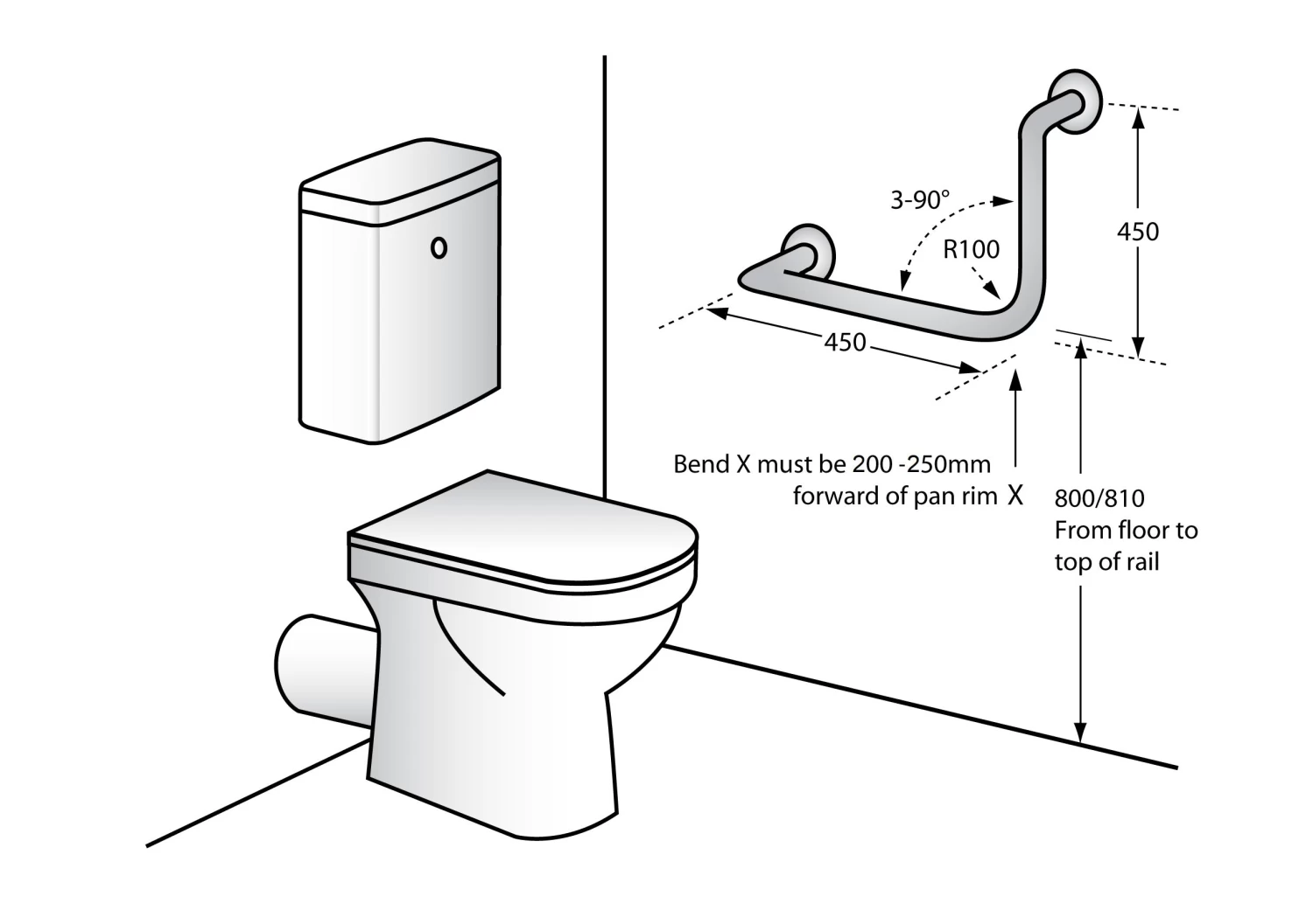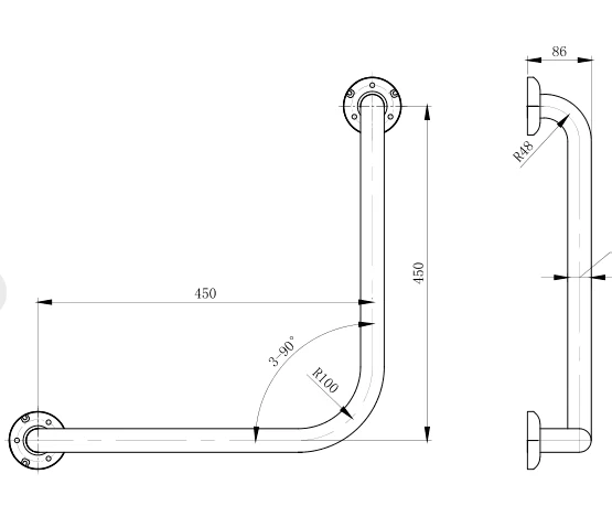 *The materials and construction of this grab rail meets AS1428.1 force requirements to be able to withstand a force of 1100Nm applied at any position and in any direction without deformation.