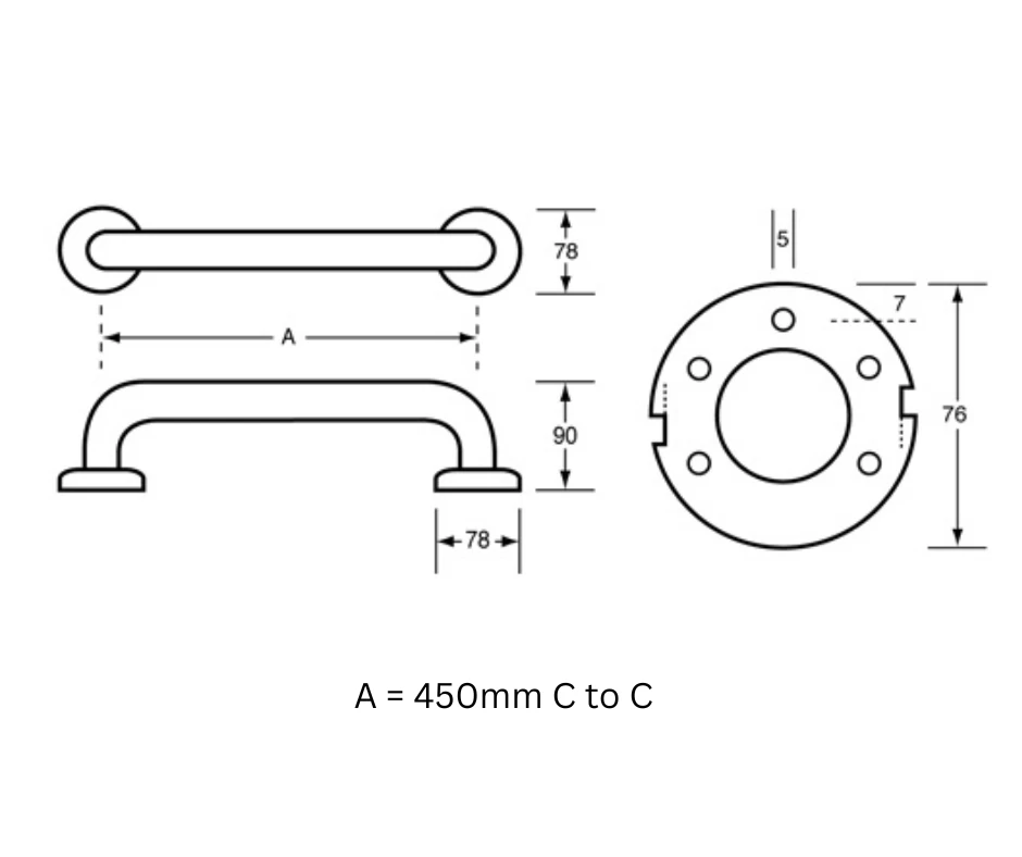 *The materials and construction of this grab rail meet AS1428.1 force requirements to be able to withstand a force of 1100Nm applied at any position and in any direction without deformation.