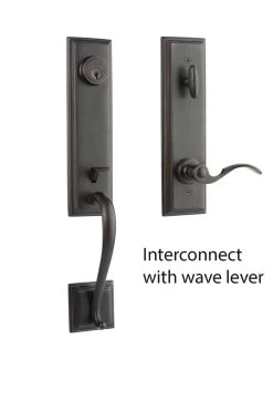 Interconnecting Set – Similar to single cylinder function ie. Deadbolt operated by key outside and thumb turn inside. However, interconnect has an added function that makes it different to a standard single cylinder deadbolt. It’s added function is a deadbolt and spring latch that retracts simultaneously when the internal lever/knob is turned to open your door. Also features matching long internal plate to match external plate.